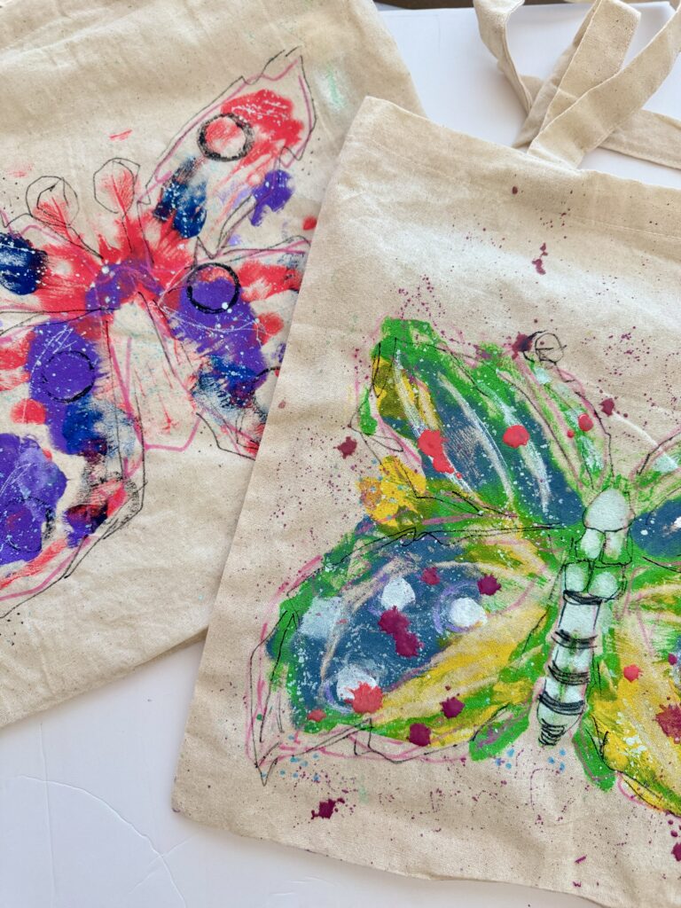 Join me for a fun parent/child creative project that will create a forever moment! Make printed butterfly totes together, all materials and FUN provided!